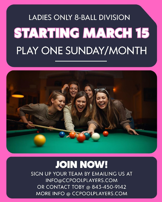 Ladies only 8-Ball division starting on March 15th. Play one Sunday per month.