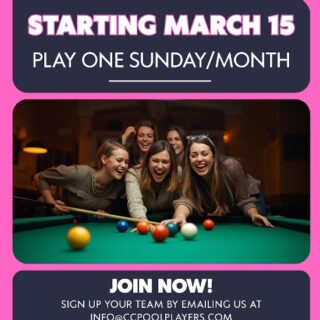 Ladies only 8-Ball division starting on March 15th. Play one Sunday per month.